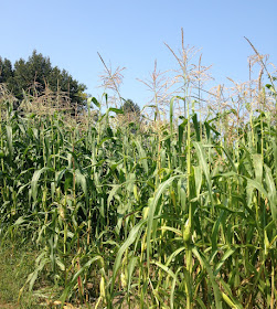 | Field of tall corn stalks behind Eastman's Boyhood Home. |